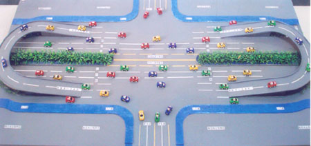 现在城市道路的阻车原闲是什么,是道 路中的交叉路口过多过密,每个交叉路 口都设置了指挥灯,红灯停、绿灯行,就是这一停一停又一停,造成了资源的 严重浪费和道路交通的严重阻塞,在现行情况下,取消红、绿指挥灯,交通更 会乱,要是在各交叉路口建造全互通的立交桥,地域绝对不允许,而且建设一 座全互通的立交桥费用相当巨大,该发明能解决以上难题,不论是打通一个十 字交叉路口,或是拿通一条路,还是使整座城市的道路交通畅通,该发明会给 你满意的回答。该发明对照“道路交通常用数据手册”中的相关数据要求都能 达到,并完全按照我国的“交通法则”规定规则执行,专家、学者及业内人士 都赞口说好,原交通部部长,05年底调任中共湖南省委张春贤书记对该项技术 非常重视,该项技术很适合中国国情,要是能早日在北京实施,对08北京奥运 将产生有益帮助,对北京的道路交通产生明显好转,2010年上海世博,是以城 市发展为主题,该项技术正好针对城市最想解决,但很难解决的城市道路交通 问题,一旦将其付诸实施。将很可能是推动世界城市发展的一次重大革命,其 前景与影响力无法估量。