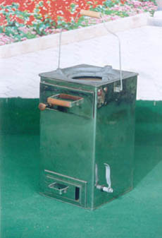 本煤炉为新型一种便于加煤的蜂窝 煤炉,它是在现有的蜂窝煤炉内设有一 个卸煤装置,该卸煤装置以一个方形框架与炉壳下部连接在一起,一根带踏杆 的横轴穿过炉壳安装于方形框架前端的一根支柱下部轴孔上,以及上部一个添 加煤球的抽屉而组成的结构。而使用这种新型煤炉的人们,最终可不用拿开炉 上的器皿,便可轻松地往炉内添加煤球和卸煤渣的繁锁工作,而且整个操作过 程简单安全,不会损坏尚在燃烧的煤块。有效地克服现有的技术不足。使用十 分方便,此外,本煤炉的卸煤装置结构比较简单,容易制造,便于推广应用, 且投资风险也小,经济效益大,市场开发前景广阔。