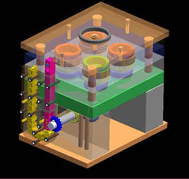 以上机构采用模具标准件制造投产(用途:1、模具带有 抽入芯的模具;2、模 具带有螺纹旋转脱模的模具。)