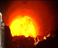 一种高温干馏的垃圾焚烧炉及其焚烧工 艺,焚烧炉包括前、后两条平行且首尾 相接、长度60米的焚烧隧道,60辆焚烧车,一个废气洗涤池,一个烟囱和一条 穿越上述两条焚烧隧道的闭合行车轨道,垃圾从进料口装入焚烧车后进入隧道 炉,经烘干区,预热以后进入干馏燃烧区区,在这里引风机吸入经预热的空气 使焚烧车里垃圾着火燃烧,同时使焚烧车上部垃圾干馏,分解出可燃气体燃烧 产生高温,不断为垃圾干馏提供热量,可燃气体在炉膛充分燃烧把二恶英烧 尽,废气经烟道和废气洗涤池通往烟囱,焚烧工艺只要在开始时用木材和少量 柴油点火,此后无需任何助燃剂就可连续燃烧。经文献检索,本发明具有新颖 性和创造性,是目前最好的:结构简单,无拨火装置,无往复动作,建设时间1 年以内,只有炉排炉的1/3,炉膛燃烧可燃气体,温度远远超过1000℃,能烧尽 二恶英,无废水,无污染,投资只有炉排炉的1/5,运行成本只有炉排炉的 1/10,余热可以用来发电,利润高,投资回收快,维修方便,垃圾有烘干控 制,燃烧稳定,还有垃圾燃烧最佳控制等自动化监控系统,具有高度的自动化 水平。