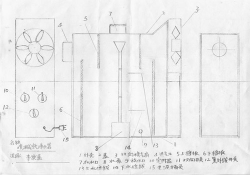 发明文摘及技术可行性分析 l、名称:水喷淋式空气净化器。