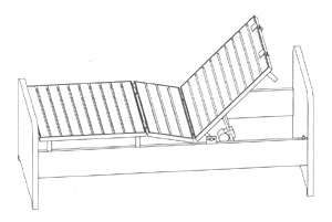 一种价格便宜工薪阶层买得起、二块床 板可转动、操作方便的电动床。可用无 线遥控或线控或手动按钮控制上体靠板和臀部坐板一起转动,上体靠板可在0— 75°角度范围内随意转动;床板中部的臀部坐板可以后倾,人体后仰靠在上体 靠板时不会向前滑动;上体靠板端部有专用枕夹,当上体靠板向上转动时床垫 及枕头不会下滑;最小转角(0°)和最大转角(75°)处都有自动限位装置; 人睡在这种床上休闲或看电视等,舒服尤加。该床的无线遥控电路中有编码密 码,每个遥控器只与一张床上的接收密码对应,可保证在同一房间使用多张无 线遥控电动床而不互相干扰,因此适用范围广;使用时噪声极低;电器安全双 重保险(电器与床双重隔离);结构巧妙、简单可靠,外形可多变,以适应各 类消费者;它的造价仅比普通家用床稍高(单人床约高300元左右),普通百姓 买得起,制造商利润空间大;适用于家庭、养老院、医院、宾馆等。电器控制 和机械结构都是成熟技术。