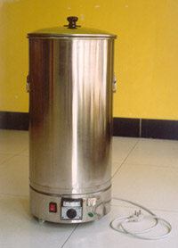 本电烤炉专为对整只鸭,鹅、鸡等 团状食品作竖立式烧烤而研制的。整个 烧烤过程干净卫生,环保良好,特适合室内使用。本产品有炉温显示及定时装 置,令操作简便舒适。本电烤炉为园柱形,目前试验成功的有餐馆式和家用式 两种,均使用220V市电。餐馆式电烤炉高72cm,外经 55cm,功率3.0kw,每次 可烤鸭5-6只,烧烤炉温约350℃,烧烤时间在30-40分钟之内,由于有自动恒温 作用,每烤一炉耗电在1度左右。家庭式电烤炉高72cm,外经30cm,功率1. 8kw,每次可烤鸭1只,烧烤炉温约250℃,烤炉时间在30-40分钟之内,每烤一 炉鸭耗电在0.4度左右。本电烤炉烤出的食品薰香酥脆,色泽艳丽,无油腻感, 大受食家欢迎。