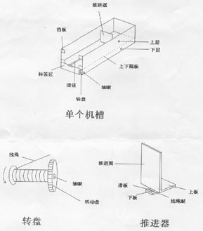 个,长短不一、原理一样的机槽,并排并列组合在一起的手动售烟机。通过转
