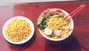 建一个小型“精制玉米面条”加工厂:①需备有20平方米 厂房两间;②三相动 力电源;③充足的玉米原料;④1000-2000元的流动资金。
