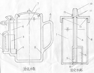 化水,保证自己始终处于健康状态。附图:1.存水容器 2.出水管进口 3.磁化