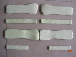 本产品是用薄板(柳木板)塑型,内衬棉垫,外包棉布制成.也 可以用竹,塑料,石膏, 铝等材料制造.有如上材料生产能力的企业均可投产。附图一塑型石膏夹板,附图 二塑型木板夹板。