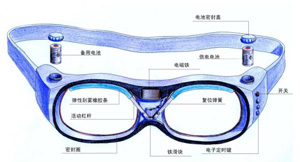 大家都知道,密封眼镜是游泳运动员、 医护工作者及科研人员常用的一种防护用 品,而镜片内侧经常起雾也是困扰使用者的一个小问题。导致密封眼镜镜片内侧 起雾的原因有两种:一是由于镜片内受到体热影响而较热的气体,遇受气温(或 水温)影响而较冷的镜片,所产生的液化现象,俗称水雾;二是被眼镜密封的皮 肤表面的水分蒸发,而在镜片上所产生的气体凝结,这两种现象通常情况下会同 时出现。戴过传统防雾密封眼镜的人,尤其是爱好游泳的人都可能有这样的体 会:新买来或新喷上防雾药水的密封眼镜还可以勉强防雾,等用过两次或是使用 稍长一段时间后防雾效果就不行了。 本实用新型针对上述问题而设计的一种防雾密封眼镜(见图),其镜片内侧安装 了类似汽车雨刮的装置。在眼镜内密封安装有电池、导线、电源开关、电子时控 器、电磁铁、铁滑块、具有一定吸水性的刮雾条、刮雾条复位弹簧。当打开电源 开关时,电磁铁通电,吸引铁滑块滑动,而铁滑块又分别与紧贴镜片内侧的两支 刮雾条的一端活动连接,所以同时带动刮雾条摆动。当电磁铁的电流在电子时控 器的控制下断开时,电磁铁失去磁力,铁滑块在弹簧的作用力下复位,同时带动 两支刮雾条复位。刮雾条这样的往复摆动即时刮去镜片上既将形成的水雾。并且 根据气温状况来调节刮雾的间歇时间,刮雾的间歇时间可以通过调节电子时控器 按键来控制,如三秒、五秒、十秒等。采用上述结构后,眼镜的镜片就可始终保 持清晰透明。