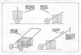 两侧的直杆拉出时,此细杆作为人手的受力点,作为拉手用,牵引篮车向前,故
