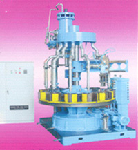 一种马氏轮机构玻璃压机,由蜗 杆、蜗轮、滑动凸轮立柱机构、马氏轮、中 心立柱和大盘构成,所述的蜗轮与所述的蜗杆相啮合,所述的马氏轮套设在中心 立柱上,所述的马氏轮通过发兰与玻璃压机的大盘相联结,所述的滑动凸轮立柱 机构是由滑块和滑槽间隙带动大盘旋转,又有凸弧轮和凹弧轮作间隙定位的机 构,所述的滑块与凸弧轮设置在蜗轮的轴上,所述的滑槽与凹弧轮设置在所述的 马氏轮的边沿。本实用新型和现有技术相对照,因为使用了新型的马氏轮机构玻 璃压机,玻璃压机在高疏运转时保持平稳,定位精确,噪声小,且耗能少。