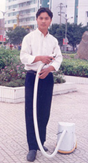 的强吸力将刚剪断的头发,由吸咀吸至积发桶内,以避免其粘附人体及洒落地面