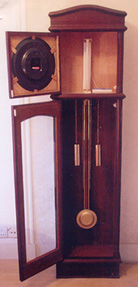 随着生活水平的迅速提高,居民住 宅条件大有改观,宽敞的客厅里放上一只 豪华的落地钟气派大增。但是目前市场上的机械式落地钟价格太贵,零售价均在 1000元以上,最高达9980元(无锡商业大厦),由于是机械式结构,走时精度也比 较低。而市场上电子摆石英挂钟的电子摆与石英钟为两个独立单元,虽然石英钟 的走时精度高,但其电子摆结构较复杂,所用元器件多、可靠性差、耗电大推力 小(均采用三极管作开关元件,故产生有害功)。电子摆落地石英钟外观和机械式 落地钟一样豪华,价格却绝对地低廉,而且不需要上发条、提重锤,也不需要随 地域不同、季节气温不同而调校走时快慢,更不需要象机械钟那样过几年要除尘 擦油。电子摆落地石英钟的电子摆与计时器相互分离,将走时精度高、价格低廉 的石英钟作为计时器,使整个钟的成本得以降低,而电子摆的电路里只有两个元 件,其中一个为不耗电的开关(非三极管),两个元件已结合成一个整体(电路间 歇导通,导通时工作电流约为11毫安),再加上一个外围元件,成本不足5元, 因此结构简单、可靠性高、耗电省,两节电池(3V)足以推动1米长的钟摆长期 摆动。电子摆落地石英钟必将以优异的性价比进入千家万户,宾馆楼堂……以至 出口创汇(正在申请国际专利)。