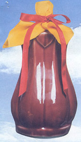 一种可旋转的瓶, 专利申请号为 02271698X,瓶身与旋转部分为紧密配合 而连成一体,由于该瓶旋转起来动感明显,如果用于高档酒类等的包装可达到标 新立异,独树一帜的效果。这是当今国内外酒类市场从未有过的崭新包装!更易 于创造名牌产品,该旋转瓶制造工艺简单,大批生产成本低。每个容量为500m的 陶瓷旋转瓶造价约为5—7元,玻璃旋转瓶仅为2—3元。图为已制成的陶瓷旋转瓶 样板。