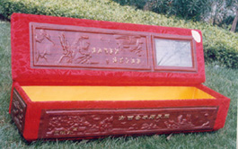 新型拼插式浮雕卫生棺,在棺体表面装饰着精美逼真的浮雕。有龙、凤、胜似仙