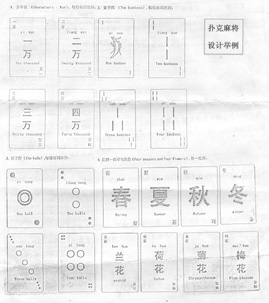 扑克麻将是传统麻将的一种发展与补 充。是传统麻将的另一种形式;传统麻将的 扑克化主要是集中了传统扑克的优点:它很轻便,可随身携带;又比较“轻 声”,不干扰他人;它可以到处玩,不受任何地点条件限制,例如可以在家中、 公园、茶室、宾馆、旅行途中的乘火车、坐船等等,而传统麻将是受到地点条件 限制的,麻将桌必须放在室内例如客厅内,因此,它不可能到处玩。提出的扑克 麻将不同于一般商品,它的构思、设计新颖,充分体现了麻将的文化与艺术;它 用途广泛,不仅作为一种“智力玩具”可以到处玩,而且可作为一种“高级礼 品”、“旅游纪念品”,用于亲朋之间礼尚往来与各种企业之间的业务往来与交 流;它还具有收藏价值;特别是它属于量大面广、永久性产品;因此,它具有不 可估量的发展前景,它会像“滚雪球”那样在我国与世界各地越滚越大;它丰富 人们的生活并将促进我国休闲事业的发展!”扑克麻将共有144张牌,牌面设计有 中、英文对照;规定由四人共玩,玩法上与传统麻将无异;牌背设计亦有独特 性,具有强大的吸引力,并附有“友谊卡”一张与若干计分筹码等。已完成《扑 克麻将可行性研究报告》、《策划提纲》、《使用说明书》等文件。附图为扑克 麻将牌面设计举例。