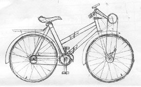 用曲轴和连杆、轴承及推拉杆结合成一套机械工作原理图。因本发明是在自行车