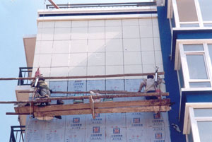 本专利产品铝塑聚苯复合保温板,它是 由铝塑板与聚苯挤塑板压制合成的一种新 型保温材料。主要适用于高层建筑外墙保温及装饰,该产品的问世,它替代了铝 塑板幕墙的装饰效果又保温节能。现由沈阳市建委科技处推建。已在沈阳市北宛 明珠花园六栋商品楼上试用,效果良好,现有沈阳市和泰房屋开发公司24层大厦 部分墙体已采用该产品正在进行保温装饰施工。并有几家房屋开发公司对该产品 正在进行洽谈之中。