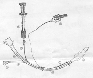 一根气囊管30厘米长缘管壁一端离导管前端2-3厘米长一个气管导管,另一端是