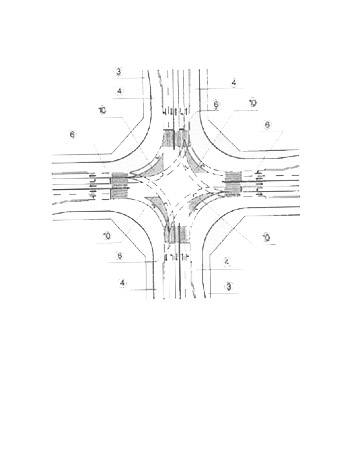 本技术方案是应用于城市交通组织 技术领域。为了提高信号交叉口的通行能 力,克服左转弯车在交叉口转弯时存在的缺点,在左转弯车驶入交叉口一定距离 处开始设置一段专用左转弯车道,然后跨越车行道中心线和直行出口车道,在交 叉口直行出口车道与右转出口车道之间设置专用左转弯车道,以驶入交叉口方向 计算,车行道设置顺序从右到左依次为:右转弯车和直行车入口车道、直行车出 口车道、左转弯车入口车道、左转弯车和右转弯车出口车道,当受道路条件限 制,可把左转弯车出口车道和右转弯车出口车道合并。左转、直行、右转车流在 信号灯控制下各行其道,把左转弯车和迎面直行车冲突点消灭在交叉口之外的交 叉口路段上,提高交叉口20%-30%的通行能力。 技术可行性分析:采用本 技术方案,车辆行驶是安全的,由于左转弯车是在规定的路线在规定的时间通过 交叉口,在交叉口对其他的车辆和过街行人基本没有干扰,同时把左转弯车和迎 面直行车冲突点消灭在交叉口之外,简化了交叉口的交通组织,使交叉*通流 更加有序化,从而提高交叉口20%-30%的通行能力。