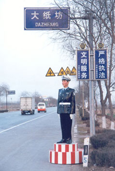 随着我国国民经济的迅速发展,各种车 辆增 多,交通安全形势严峻,公安局交警队为了保 障路畅民安,花费了很大警力,整治道路交通 秩序,采取了很多的措施,强化交通安全管 理。为了配合你们的工作,我厂采用先进工 艺,设计制作了身高1.88米,在指挥台上值勤 的模拟警察,他警容严整,姿态端正,形象逼 真,目光炯炯,将他安放在危险路段及事故多 发区,定能警示过往车辆和行人,遵守交通法 规,注意交通安全。