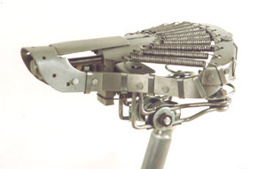 本实用新型专利是一种新式的自行车鞍 座,座 面上采用弹簧减振,稳定性好,减振效果好, 遇有道路颠簸时更显示出优越的减振性能,坐 在上面仍感到平稳舒适,座面上安装13个弹 簧,利用弹簧的拉力减振,前后形成扇形联 接,由于增加了弹簧数量,坐在上面不会有两 个弹簧之间空档的感觉,座面上的13个弹簧都 是一头固定在框架后部,另一头固定在中部的 联接板上,联接板与前部的调节螺栓螺纹联 接,旋转调节螺栓可同时调节座面上所有弹簧 拉力的大小,使用者可根据自己的体重很方便 的调节弹簧的拉力,体重比较重的人可以把弹 簧拉力调大一些,体重轻的人可以把弹簧的拉 力调的小一些,座面上的13个弹簧其自由长度 中间的最短圈数最少由中间到两边依次加长圈 数增加,两个边上的弹簧最长圈数最多,这样 的弹簧布局使拉力由中间到两边依次减小,坐 在上面不会觉得边上的弹簧隔的慌,经过一段 时间的使用,弹簧由于疲劳使自由长度拉长 时,旋转调节螺栓使联接板向前移动可将弹簧 拉紧使其恢复弹力,增加了平衡簧可平衡弯 矩,调节螺栓通过球形垫定位套和定位螺母固 定在框架前端,因是球面接触使调节螺栓上下 活动时平稳又不会被卡住,本自行车鞍座,结 构合理牢固可靠,安装蒙皮方便,安装蒙皮时 将蒙皮罩在鞍座上,蒙皮上有若干个孔,框架 下面有安装片,蒙皮从鞍座下面由外往里卷进 去,安装片由蒙皮上的孔插进去弯成勾状从里 面勾住蒙皮,前端蒙皮直接用螺栓加垫片固 定,螺栓被蒙皮蒙在里面。本专利具有极强的 实用价值和商业前景,开发本专利具有成本 低,投资少,效益好,利润高,基本无风险, 因每年中国市场需要7000万个左右自行车鞍 座,市场需要量巨大,又因为本自行车鞍座舒 适,稳定性好,减振性好,使用寿命长,外形 美观必然会在市场上占据很大优势,每年的销 售数量和利润非常可观。本专利权人意欲向国 内外独家项目垄断转让,也可考虑合作开发,其它形式的 转让。欢迎国内外企业家各界有识之士前来洽 谈购买本专利事宜,就转让费和其它具体问题 进行实质性谈判,转让费面议。如欲购买本专 利请从速联系。