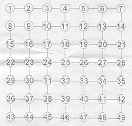 较智棋:1,棋盘如图,圆圈代表棋位。 2,双方分为黑白两色。每方有棋子12个:正方形(叫做:方块)2个,长方形 (叫做:长条)2个,菱形(叫做:菱形)2个,梯形(叫做:梯形)1个,圆 (叫做:圆)1个,三角形(叫做:三角)4个。双方共有24个棋子,棋子的形状 为立体几何形。3,方块:只可斜走(沿小方格的对角线),格数不限。长条: 走“日”,不别腿。菱形:可直横走,格数不限,吃子时须隔一个子。梯形:可 直横走,格数不限。圆:可直横斜走,格数不限。三角:可直横斜走,每次走一 格。4,三角(其它子无效)走到对方的4号(或46号)位为胜;吃光为胜。5, 黑方先将棋子布置在己方的三条底线上的任意12个棋位上。然后,白方也这样 做。之后,黑方再移动两个棋子的位置。最后,白方开始走棋,每次走一个子。 6,行棋记录的方法是:如长条自32号位走到19号位,记做:长方形32—19,读 做:长条32杠19。