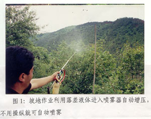 利用落差进液可全自动喷雾。实践证明它的综