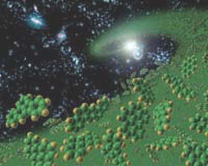 美国康奈尔大学天文学家利用“斯皮策”红外太空望远镜对50个非常遥远的浅蓝色密实矮星系中多环芳香烃分子的形成与破坏进行了研究,天文学家认为,正是主要由氢和碳原子形成的分子组成最初的“建筑砖块”,后来由这些“建筑砖块”“装配”成最初的生物。现代天文学一个主要任务是,要确定在宇宙存在的最初阶段是否拥有类似地球生命的复杂有机分子。