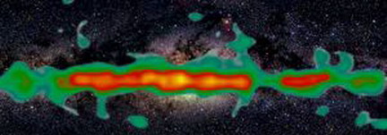 以德国马克斯•普朗克地外物理研究所罗兰•狄尔博士为首的科学家查明,放射性铝Al 26衰变产生的伽马射线来自我们银河中心地区,组成我们银河中心的化学元素由于恒星中心热核反应和超新星*在很久以前就已形成,这些作用过程伴随有伽马射线,从2002年10月起Integral天文观测台测量到这些伽马射线。