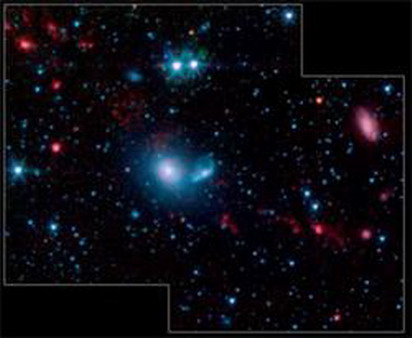美国纽约州康奈尔大学天文学家利用“斯皮策”太空望远镜试图解决这一难题,他们仔细研究矮星系群体,发现它们显然不是在大*之后马上产生的,而是由于两个巨大星系碰撞的结果,形成的聚集体NGC 5291离开地球约2亿光年。全部15个矮星系延伸在由两个碰撞星系连成的一条长约24万光年的弧线上。