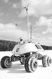 卡内基梅隆大学的研究人员最近在新罕布什尔州马斯科姆湖的冰面上进行了有关试验,以研究“流浪者”机器人越野车靠风电和太阳能电力供电的可能性。结果,该车成功地穿过马斯科姆湖的冰雪湖面,行驶了10公里。这项工作是“在南极用机器人探索生命计划”(LORAX)的一部分,该计划打算测量在南极高原近表面冰层生存的微生物的分布状况。