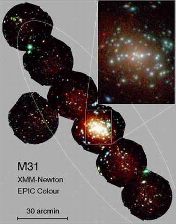 天文学家分析XMM-牛顿望远镜观察的档案资料,研究仙女星座面积为1.24平方度中856个亮度超过4.4×1034尔格/秒的光源。