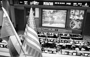 10月16日,俄罗斯“联盟TMA-5”载人飞船与国际空间站的“码头”号对接舱成功对接,俄罗斯和美国的工作人员在莫斯科附近的地面飞行控制中心紧张工作。