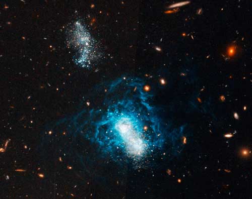 图片说明:美丽而神秘的I Zwicky 18星系中有昏暗的恒星。 (图片来源:NASA/STSCI)