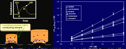 美国加利福尼亚理工学院化学与化学工程系Lewis研究小组正在研究开发一种电子鼻模型。加州理工的科学家们通过努力,得到了一系列简单、容易制取的化学敏感的高分子传导膜。