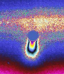 照片为2006年3月卡西尼拍摄的经处理的土卫二南极“冰间歇泉”爆发的景象。图片来自NASA火箭动力研究所