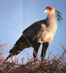 初看秘书鸟,你会觉得它像鹭类,因为它们腿很长,取食方法也跟鹭相似。它们成对或成小群在草原上游荡,以地面小动物为食。有些鸟类学家曾同秘书鸟做过这样的“游戏”:他们骑在马上向秘书鸟飞奔,这时秘书鸟便放开大步急奔逃跑,它们的奔跑速度之快为奔马所不及。但秘书鸟在同奔马赛跑时,体力稍有不济,它们很快就会疲劳。可是,奔马冲来时它们干嘛不飞,难道它们不会飞吗?不,秘书鸟会飞,而且飞得很快。只不过它们好像不愿飞