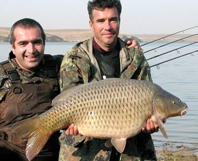 在罗马尼亚萨鲁莱什蒂举行的世界钓鲤鱼大赛上,两名罗马尼亚渔民钓上了一条重达16.5千克的大鲤鱼。