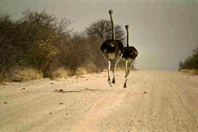 鸵鸟是世界上最大的鸟,栖息在非洲的沙草地上,不会飞,却跑得极快。南非一个监狱农场的警务人员,驯练了一只高2.44米,重136千克的大鸵鸟,为农场牧羊数百只。鸵鸟经常来回奔跑,将离群的羊及时的赶回羊群。鸵鸟总是高抬脖子,警惕地注视着一切。要是来了偷羊贼,鸵鸟能一脚踢断他们的肋骨。恶狼更没好下场,鸵鸟锋利的爪子能轻易地割开它的肚皮。