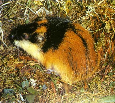 警觉地注视周围的动静 旅鼠是一种极普通、可爱的小动物,常年居住在北极。旅鼠体形椭圆,四肢短小,比普通老鼠要小一些,最大可长到15厘米,尾巴粗短,耳朵很小,两眼闪着胆怯的光芒。但它被逼得走投无路时,也会勃然大怒,奋力反击。爱斯基摩人称其为来自天空的动物,而斯堪的纳维亚的农民则直接称之为“天鼠”。这是因为,在特定的年头,它们的数量会大增,就像是天兵天将,突然而至似的。 旅鼠虽为哺乳动物,但其繁殖能力是很强的。在北极的3月份,当北极狐为求偶而发出的粗哑尖叫声打破了宁静的苔原带时,旅鼠早已产下了第一窝仔,并在雪下忙于抚养其新生的子女。赶上好年头,一只母旅鼠一年可生产6~7窝。新生的小旅鼠出生后30天便可交配(最高的记录是出生后14天便可交配),经20天的妊娠期,即可生下一窝小旅鼠,每窝可生11个,据此速度,一只母鼠一年可生成千上万只后代,确实令人惊叹不已! <