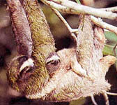 为什么叫它树懒呢?因它这一辈子离不开树,吃的是树叶、嫩芽、果实,吃饱了就倒吊在树上睡觉。如果你故意惊动它一下,它只是慢悠悠地转过头来瞅你一眼,像蜜蜂似地发出嗡嗡的叫声,之后就慢慢挪动身体移到另一个树枝上。