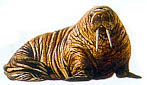 海象因其口悬一对长75~96厘米的撩牙,与大象相似而得名。这种长可达3.6米,重1600公斤的巨大海兽是北极的特产。它的头很小,眼也小,皮色灰而毛粗短,爱在海底搜捕双壳类等动物吃。它的巨大撩牙可以用来破冰、登岸、掘沙觅良和御敌,还用来在海象群中建立支配地位。