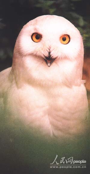 别名 白夜猫子 学名 Nyctea scandiaca 英文名 snowy owl 鸱?科 Strigidae 分布 新疆、黑龙江、辽宁、陕西等地冬候鸟 大型猛禽。全长约60厘米。全身羽毛白色,具褐斑。眼先和面盘稍染浅褐色;头顶杂有少数黑褐色斑点。下体腹部具窄的褐色横斑。嘴铅灰或黑褐色。爪灰褐,端黑。 栖息于冻土和苔原地带,也见于荒地丘陵。以鼠类、鸟类、昆虫为食。在北极和西伯利亚繁殖,越冬时可见于我国北方部分地区,十分罕见。