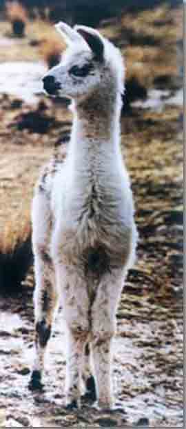 驼羊曾分布在南美的西部和南部,是南美4种骆驼形动物中最有名的一种。它早在1 000多年前被驯化,是西半球人驯化成驮兽的唯一一种动物。驼羊的肩高有1.2米,体重70~140千克,身上长着优质而浓密的长毛。驼羊喜欢栖息在海拔高的草原和高原上,最高海拔可达5 000米。驼羊喜欢小群生活在一起,一般5~10只。雌兽由一直壮年雄兽带领,群内的雌兽都非常忠于头兽。一旦头兽被敌害所伤,它们并不逃跑,而是聚在头兽身边用鼻子拱它,试图让它站起来一起走。狡猾的人类就是利用它们这一特点,可一次捕杀一群驼羊。驼羊从不到树林和多岩的地方去,主要以草为食。驼羊性情机警,视觉、听觉、嗅觉均很敏锐,奔跑速度也很快,每小时可达55千米,这些为它们在开阔地带生活,逃避敌害起到了至关重要的作用。
