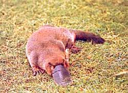 鸭嘴兽的尾巴扁而宽,前、后肢有蹼和爪,适于游泳和掘土。 鸭嘴兽喜欢穴居在水边,生活在山溪、江河、湖沼里,平时在河边挖掘水中捕食小虾、螺蛳、蠕虫、蚯蚓等小动物。鸭嘴兽的口腔内侧有一个小袋状的颊囊,有时反捕获到的食物藏在囊内,如果抓住螃蟹等大动物,它就拉到水面上,咬破四壳吃掉,但不吃鱼类。