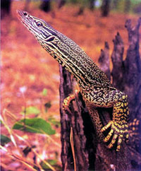 婆罗洲的拟毒蜥是巨蜥中唯一不属于巨蜥科的巨蜥,它属于拟毒蜥科,拟毒蜥属。拟毒蜥非常罕见,动物学家对它的了解也很少,其身长大约在4O厘米左右。