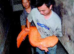 2003年6月4日上午,珠海斗门人黄俊海驯养、繁殖的一批中国大鲵与公众见面,其中包括一条长约1.3米、重达40公斤的世界上最大的黑色娃娃鱼和一条长1米、重约10多公斤的金色娃娃鱼。一批国内专家对他这项科技成果进行了鉴定,认为他解决了一个世界级的难题。