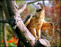 大型猛禽。全长65厘米左右。体色变异大,有暗褐型和栗棕型。头顶褐色,头后及枕部羽毛狭长,形成短羽冠,常明显露出;颏部黑纹与喉纹相连成横纹。背部及翅覆羽暗褐色,稍带紫色。飞羽具灰褐色横斑。尾羽灰褐色,具3-5条黑色宽带斑及若干 < 1 > < 2 >