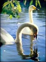 大型游禽。全长约140厘米。全身羽毛纯白色。颈部修长而弯曲。眼先至嘴基淡*,上嘴*可达鼻孔,嘴尖及下嘴黑色。脚黑色。
