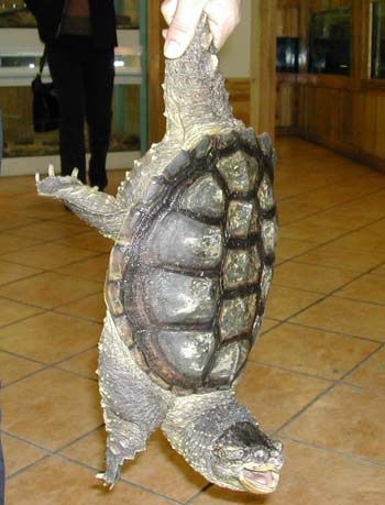 它利用自己粉红色的舌头吸引鱼在它的上下颌间游动,并使鱼产生一种美味唾手可得的想法,正是凭借这条叉状舌头,它才以位居十大骗子的第六位。鱼很容易上当,把海龟当作池塘中的一块木头,但这块木头却充满了危险。为了吸引更多的鱼落入陷阱,“鳞头大鳄龟”的舌尖俨然一条与众不同的蚯蚓。这样这条蚯蚓会不断变化,这只是时间问题。有些人类罪犯并不仅仅如此,他们不仅用蚯蚓做鱼饵,甚至用整只“鳞头大鳄龟”抢劫钱财。在德克萨斯的鲍尔奇温泉,一个送比萨饼的人被抢劫了50美元,两个骗子将他堵在电话亭中,并用“鳞头大鳄龟”进行威胁。因此,下次你碰到海龟时一定要小心,这些狡猾的动物喜欢出人意料地咬你一口。一言以蔽之,“鳞头大鳄龟”可能会带来许多麻烦。